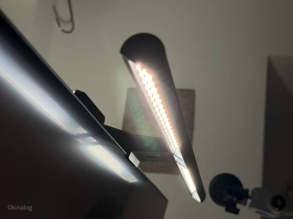 非対称配光の設計(モニターに光が反射せず目に直接光を当てない設計)については、ScreenBarシリーズ自体前々から導入していて直接目に光源が照らされないから眩しくないのは実感していた。