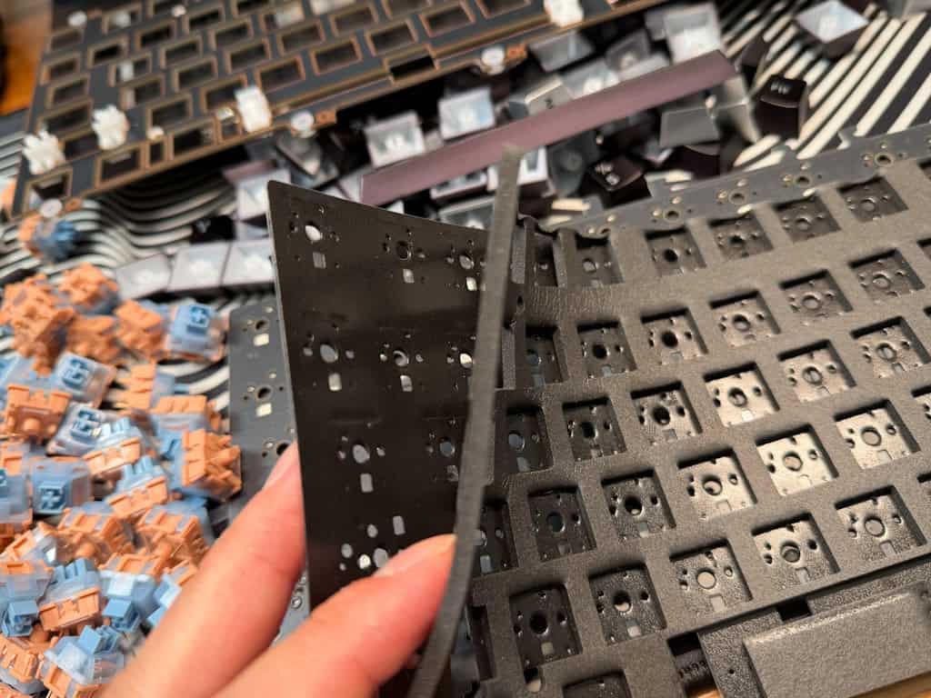 この組み合わせで無駄な摩擦感のない「カツカツカツ」と反響感少なめで素直な打鍵感に仕上がっている。