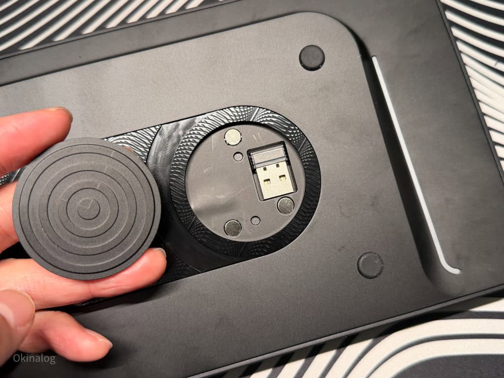 キースイッチやクリップ、小銭、スマートリングなどデスク上で置き場所に困る小物類を簡易的に手元に置いておくことができるちょっと便利な機能だ。