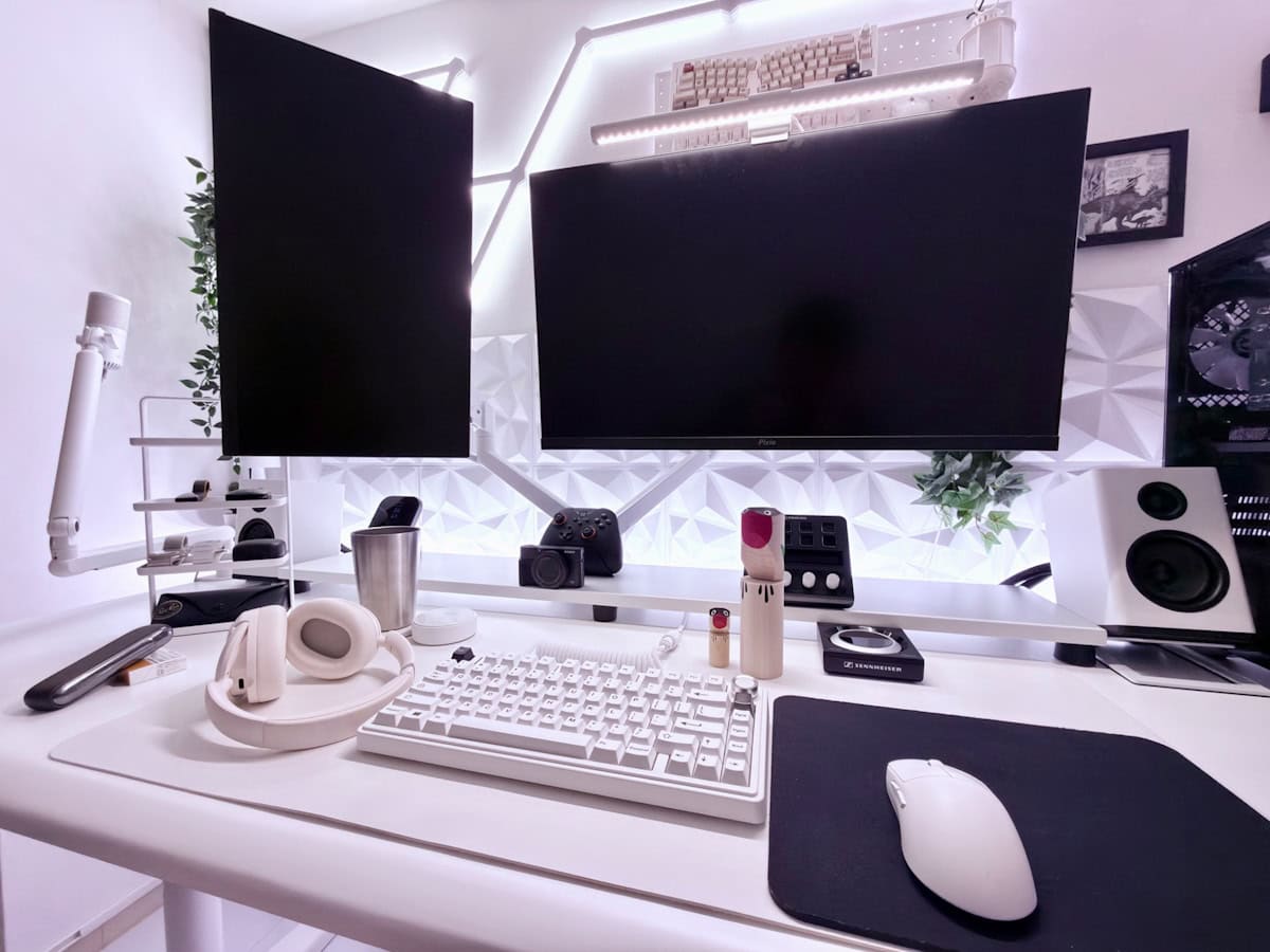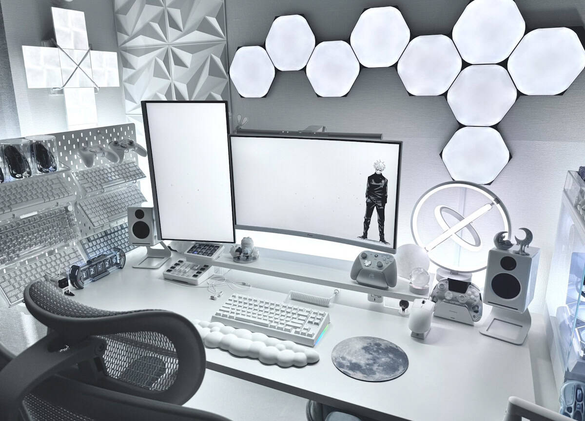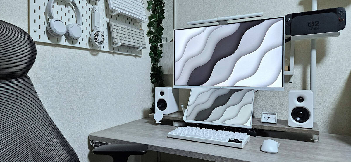 白天板じゃなくほかのアイテムで白を揃えることで後付け白デスク構築の再現性を体現していると思う。