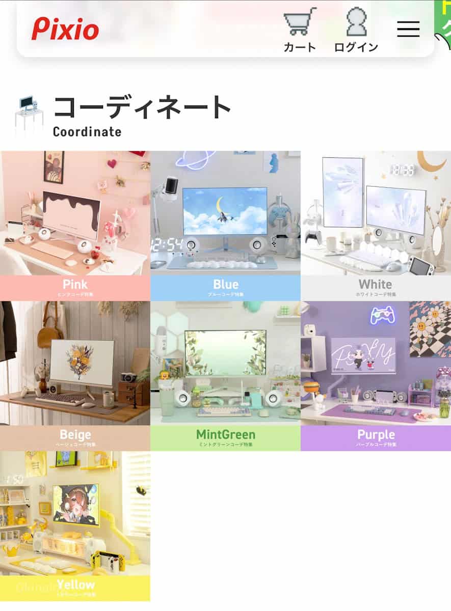 Pixioは、白アイテムだけでなく様々なパステルカラーのモニターや周辺機器を多く展開している。(僕は触れたことないけど)
