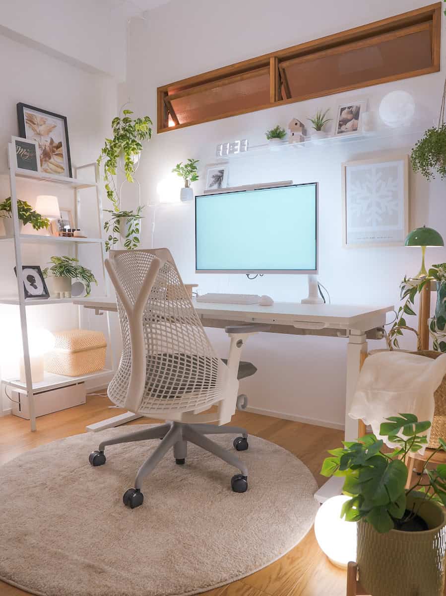 注意を削ぐ無駄を極限まで省いてイトーキのオフィスチェアに座って作業、植物で回復。