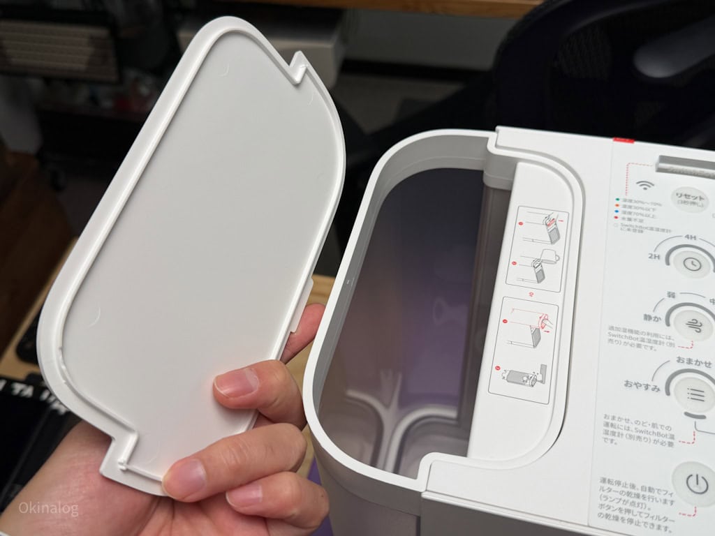 SwitchBotの加湿器はそこもしっかりと考えて設計されていて、初心者でも簡単にメンテができるよう分解がしやすい造りとなっている。各フィルター、タンクなど超簡単に取り外すことができる。