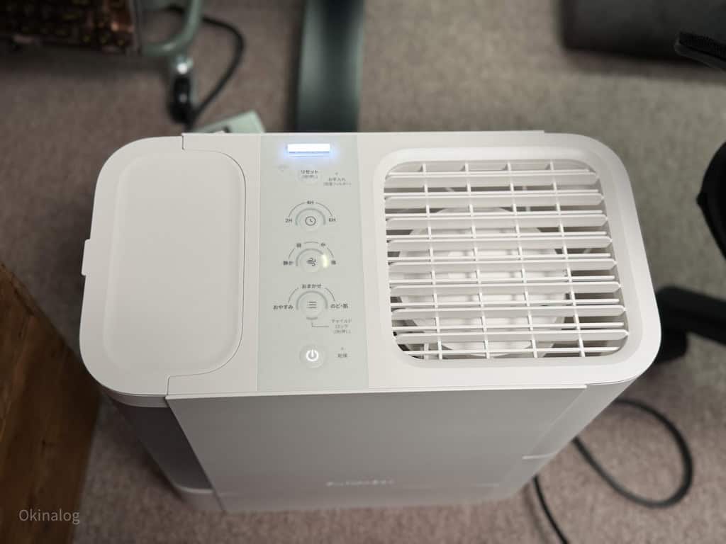 構造としては、いちばん自然に近い“フィルターに水を含ませて、そのフィルターに風を当てて自然蒸発で空間に水気を飛ばす形態”だから、超音波式のように粒の大きいミストが出らず家電や家具なんかに白いカルキがつく心配も少ない。