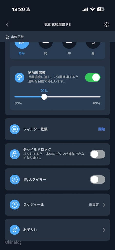 まず、SwitchBotの加湿器はヒーターを使わない気化式を採用しているからこどもがいても火傷のリスクがゼロ。しかも、チャイルドロック機能も搭載しているからこどもがいる家庭でも比較的安全に導入することができる。